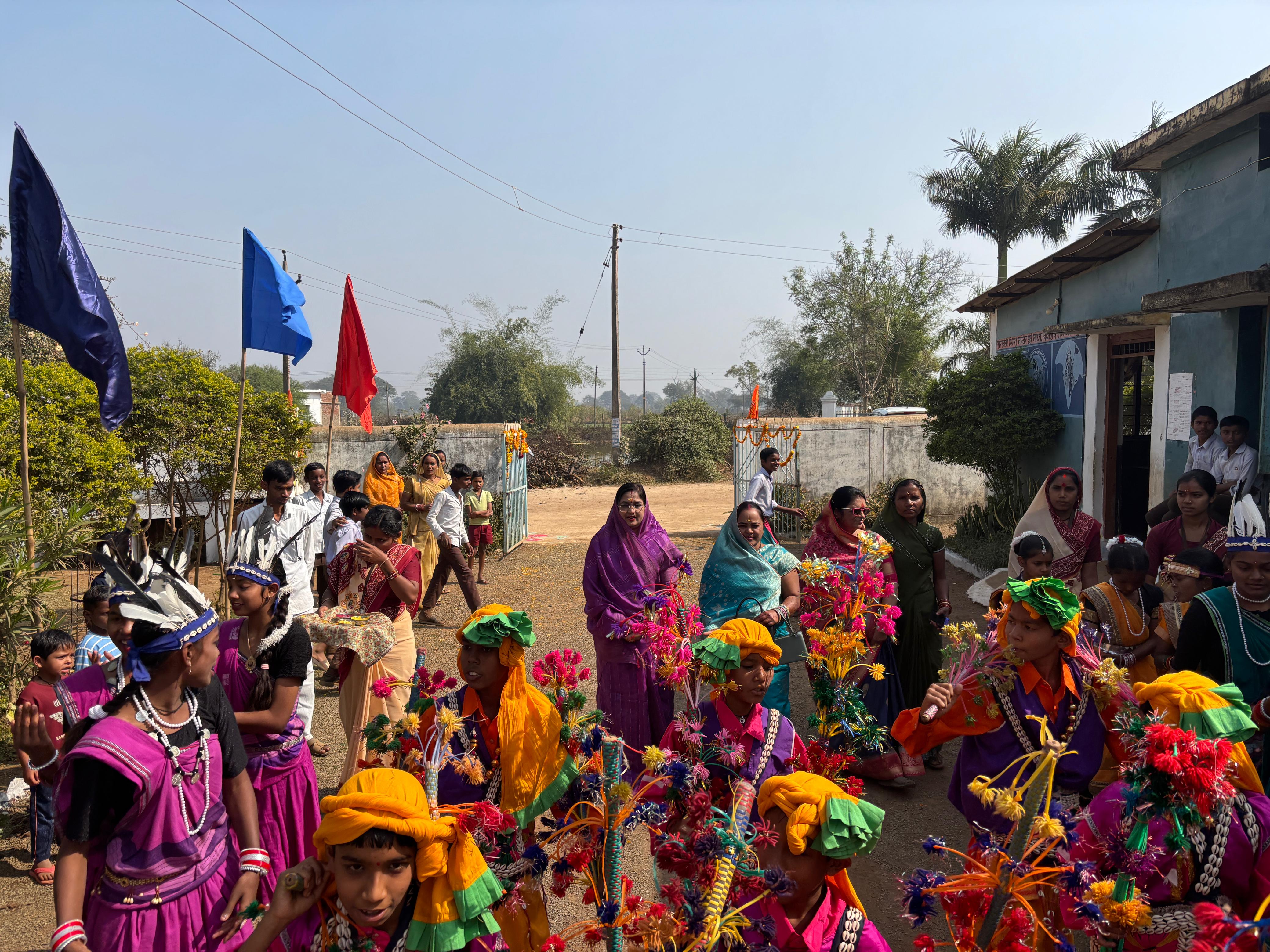 बच्चों के द्वारा छत्तीसगढ़ के पारंपरिक वेशभूषा मे छत्तीसगढ़ी गीत व राउत नाचा के साथ उनका अभिनंदन किया गया।तत्पश्चात अतिथियों के द्वारा सरस्वती माता व भारत माता एवं आध्यात्मिक प्रतीक चिन्ह ओम के तैलचित्र पर पुष्पमाल्य अर्पित कर गुलाल लगाकर दीप प्रज्वलित की गई। शिशु मंदिर की शिक्षिकाओं द्वारा सरस्वती वंदना का गायन कर कार्यक्रम का भव्य शुभारंभ किया गया।
